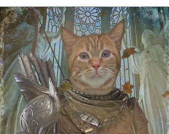Personalised Custom Pet Dog Cat Portrait Joan Of Arc Funny Portrait Gift Canvas Ebay